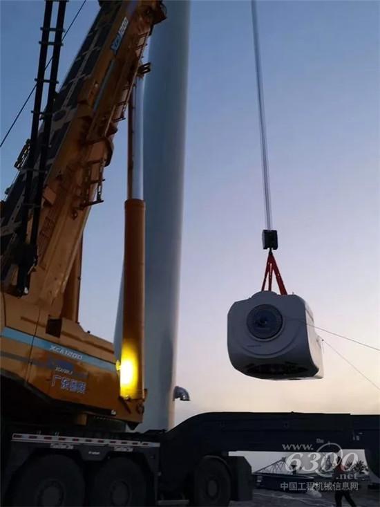 以往,重达103t的机舱会采用两次各50t的分体吊装方式,升级版XCA1200_1出场后,其一系列性能参数给在场人员吃了一颗定心丸:风电机型,7节89.7米主臂,自折叠25.2米风电臂。“地面组装,整体吊装,从地面到就位起升过程30分钟,对接过程30分钟,起重重量翻倍,所花时间减半,吊装效率翻倍。” 广东粤陕电力工程有限公司XCA1200_I操机手毫不吝啬夸赞其手上的这台风电利器。