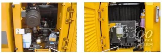 全新升级的155L大容量燃油箱,有效延长您的工作时间;柴油预滤器布置于配重右侧,保养更方便;全开启式发动机罩,设置定位机构,开起轻便安全,发动机舱空间大,方便保养维修;电器元件集中布置,方便检查维护;玻璃水加注、空气滤芯更换、电源总开关触手可及。
