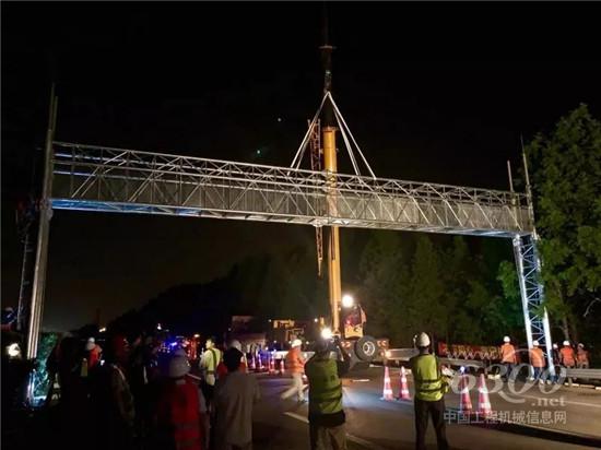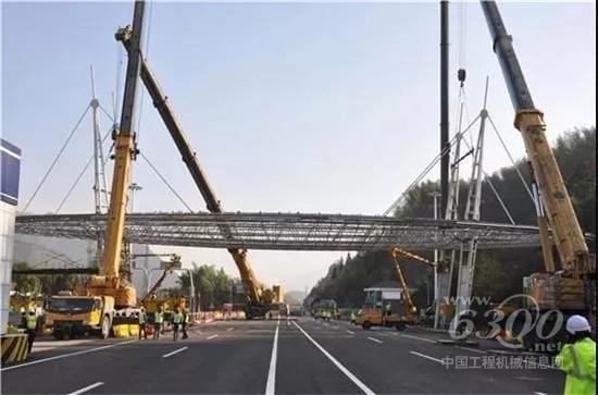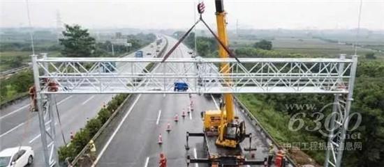 在高效率完成收费站破拆工作后,各类起重设备又火速投入到ETC门架系统安装工程中。
