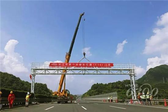 京珠北高速公路湘粤省界粤北站附近完成ETC龙门架吊装