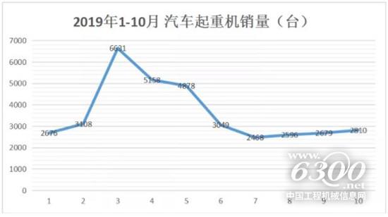 据中国工程机械工业协会工程起重机分会对10家主要汽车起重机生产企业统计,2019年10月份,销量为2810台,同比增加459台,增长19.5%。1至10月份,累计销售汽车起重机36053台,同比增加9011台,增长33.3%。