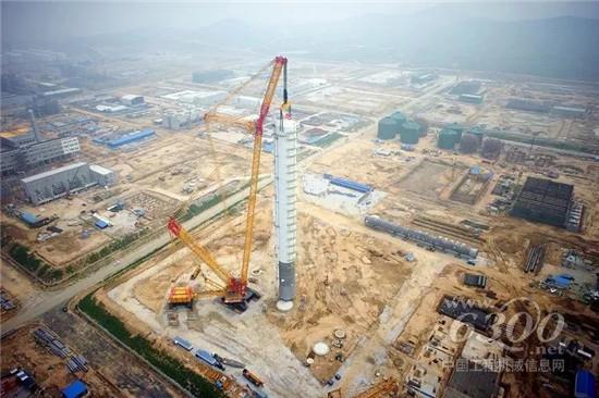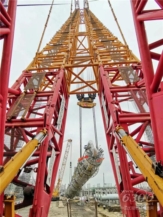 中科炼化一体化项目最大设备(乙烯2号丙烯塔)建设安装现场,“世界第一吊”挑战海岛炼化项目设备体积最大、高度最高,吊装难度最大、吊装要求也最高的千吨级乙烯2号丙烯塔吊装。