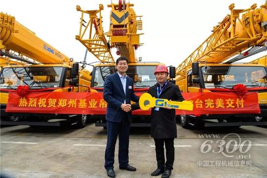 12月18日,凌冽北风下,蕴藏着巨大的发展能量。在全球最大的起重机生产制造基地,13台徐工QY25K5-1汽车起重机列兵布阵,整装待发。徐州重型机械有限公司营销公司副总经理马庆洁亲自将群车“金钥匙”交付到郑州基业装卸董事长张百磊手中。