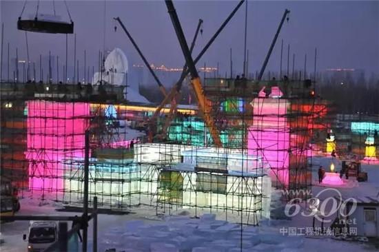 据了解,第21届哈尔滨冰雪大世界在2019年12月初开始取冰造景,无数块长1.6米,宽0.8米,高0.5米,重达一吨的冰块被源源不断运送至施工现场。本届,XCT25、QY25K5-1、QY70k-1在内的50多台徐工起重设备现场效力。