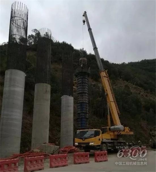 QY25K5-1携QY30K5,QY20K5大小兄弟,云南省华丽高速马过河隧道桥,马过河隧道桥施工难度大,跨距长,项目的完成将成为高原山区施工的经典工程。