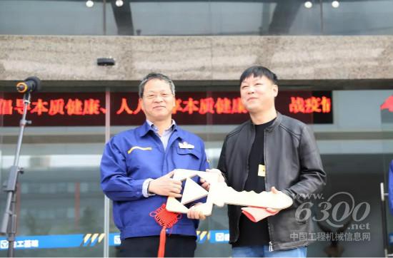 徐工基础事业部党委书记、总经理孔庆华向客户交付金钥匙