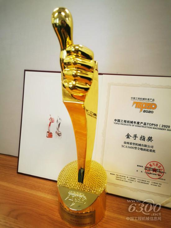 而徐工超级移动式起重机再放光彩,征战南北,吸睛无数的徐工XCA1600全地面起重机,一举斩获“中国工程机械年度产品TOP50金手指奖”。