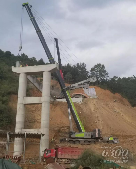 土锅寨大桥是广那高速项目的重点控制性工程之一,为圆满完成目标任务,该项目主要承建方云南建设基础设施投资股份有限公司主要领导高度重视,经过前期的多方考察与严格筛选,最终选定性能优越的中联重科起重机设备——大吨位全新产品ZAT4000参与广那高速的建设。为保证汽车吊架设预制T梁的施工安全,首次吊架前项目承建方特邀请了桥梁专家对预制T梁架设专项施工方案进行了评审及现场踏勘。在制定切实可行的安全质量保证措施后,我司ZAT4000全地面起重机设备完成了T梁的首次成功试吊。