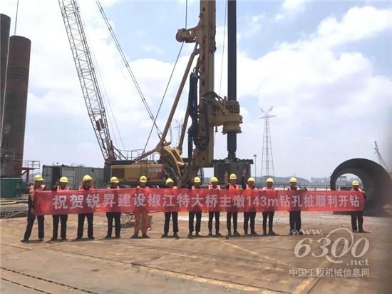 在杭绍台铁路椒江特大桥建设项目施工时,徐工基础对参与施工的旋挖钻机XR550D在性能上进行了大幅提升,可满足最大钻孔直径3.5m、最大钻孔深度146m的施工。不负众望,徐工XR550D将国内旋挖钻机超深桩施工纪录刷新到143m