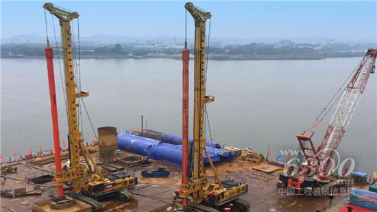 在这项世界级的工程项目中,徐工多台XR550D以自主研发的旋挖钻机专用H型液压伸缩式履带底盘大直径回转支承,保证了超强的稳定性,并配备132m全单排绳主卷扬技术,克服了长江水流湍急以及砂岩硬度高等复杂的地质情况,安全又高效地完成直径2.5米、深度65米不等的群桩设计。