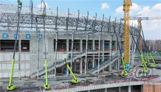 据悉,本项目幕墙施工工程批量使用中联重科高空作业机械平台,由东莞市家锋机械有限公司全权负责其租赁业务,是中联重科与家锋机械强强联合、精诚合作的又一次极佳体现。4月,凤凰山体育公园体育中心足球场的大面积外装和内装工作启动,中联重科高空作业机械设备启动进场,大范围投入施工。中联重科相关负责人介绍,参建成都大运会体育中心足球场的高空作业机械产品,均为高米段臂式设备,是中联重科高机的王牌核心产品。据介绍,参建凤凰山体育公园项目集群作业的中联重科高空作业平台,均为42米、38米高米段直臂产品。