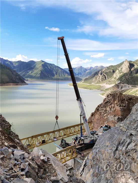 路宽8米,道路两侧悬崖加水库的配置让施工的空间大打折扣,起重机找角度、回转、转场等操作都将受到极大的限制;长40米、重140吨的T型梁在所有吊装施工案例中都是难得一见的,这对于起重机的起重能力有着极高要求;七月至八月是西藏的雨季,频繁的下雨,令悬崖上的碎石更加容易滑落,从而阻碍施工设备的正常运行。
