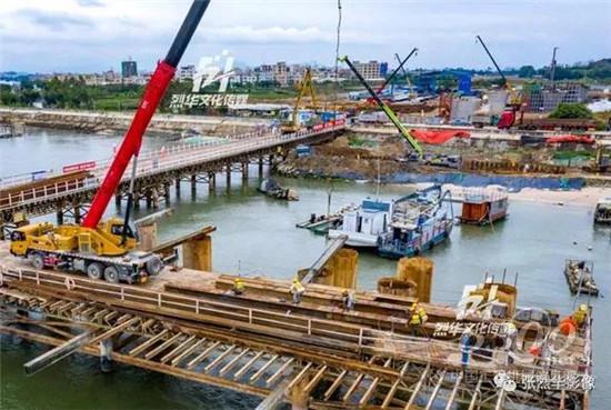 4月11日,榕江特大桥主桥106号主墩塔区最后一片钢箱梁吊装成功。计划5月1日开始标准梁段吊装,力争在6月底台风前实现主桥钢箱梁合龙。今年建成通车。