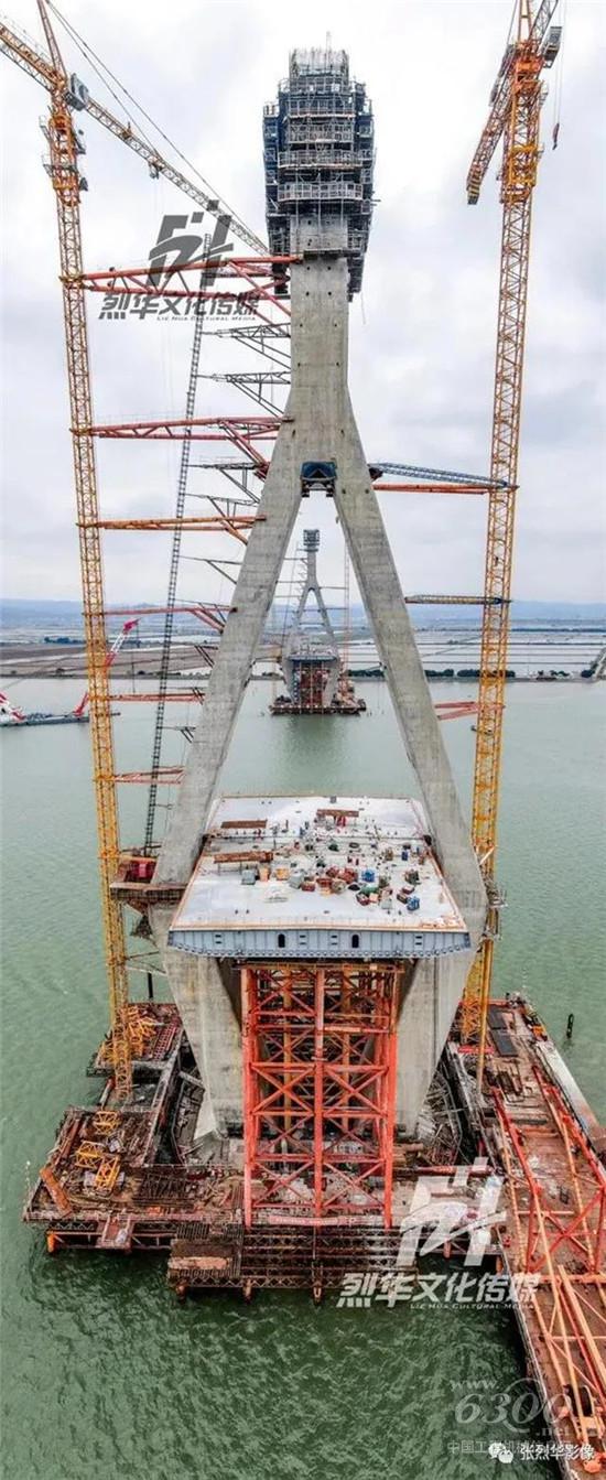 主塔造型为不规则水滴型,象征着汕头海洋文化。主桥设计为独塔双索面叠合梁斜拉桥,预计主体结构10月份封顶,明年6月份全桥建成通车。