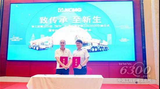 揭阳市德荣机械租赁有限公司的周总在刚交接完徐工XCA500超级起重机后,当场又签约了一台XCA750。周总表示“徐工的起重机是公认的质量好,我今天刚交接的这台500吨,车还没开走,已经预定好工程了。今天再签一台750,相信徐工准没错!”