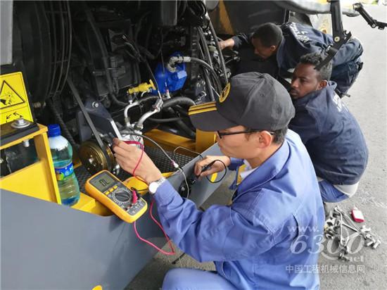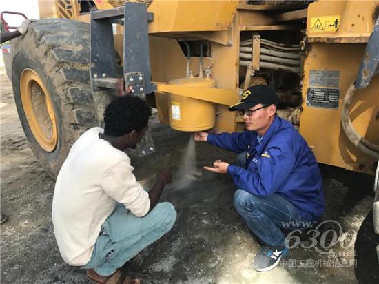 趁着机手轮岗休息的时间,朱笑笑带着“洋徒弟”爬上装载机细致测试排查,发现由于产品使用年限较长,且空调每天运转时间超过20小时,压缩机内部密封件老化,制冷效果明显下降。