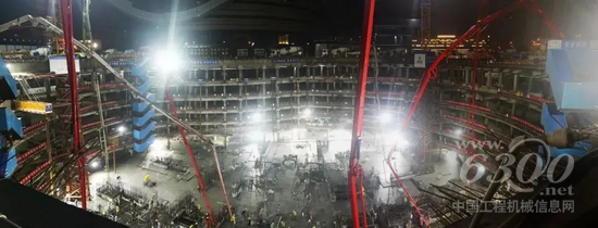 超高层楼宇施工难度大,而基础底板的一次性连续浇筑,关系到大楼的基础,质量要求非常高。该项目约4.5万方大底板采用的是高标号C50P10混凝土,需60个小时连续浇筑,对泵送设备要求极高,不能出现堵管、高温等其他故障。