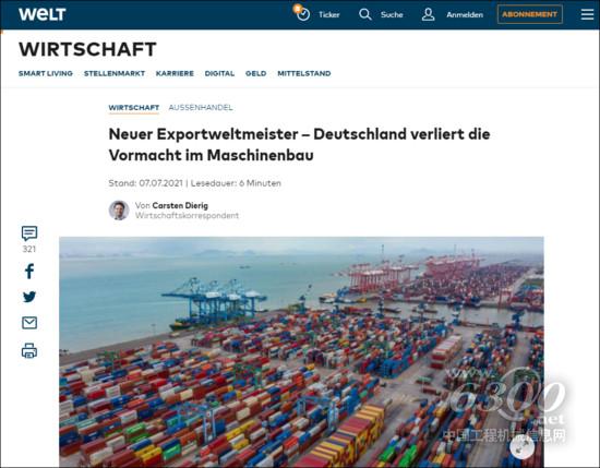 《世界报》:新的出口冠军——德国在机械制造领域失去霸主地位