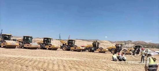 机器轰鸣,马力全开。在西宁曹家堡机场三期扩建的跑道、航站楼标段, 9台徐工压路机、1台徐工平地机、2台徐工冷再生机参与施工建设,形成一幅幅美丽的画卷。其中,8台加装PD轮的徐工新一代XS265JS压路机机群施工尤其亮眼。不同于普通的路基施工,机场建设工程,土方填方量高,从地面标高填方38米,来料后使用推土机、平地机刮平,冷再生机拌和后,再使用压路机进行压实。实际施工中,虚铺50cm,压实后厚度30cm,每碾压厚度到4米,进行一次强夯。这就对压路机的施工重量、振频、振幅和激振力提出了更高的要求。