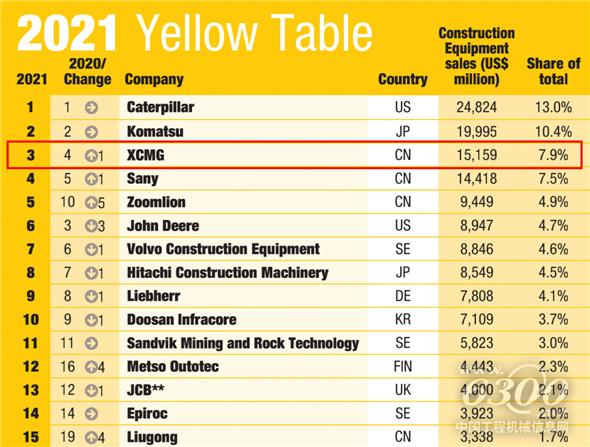 今年上半年,徐工机械继续推进高质量、高效率、高效益、可持续的“三高一可”高质量发展理念,产量、销量、营业收入、净利润等主要指标再创历史新高。英国KHL5月发布的“2021年全球工程机械制造商50强”榜单,徐工首次进入全球前三,连续32年稳居中国工程机械第一位。