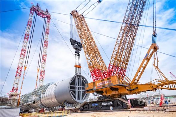 4月,徐工XGC88000“世界第一吊”圆满完成亚洲最大石化塔器