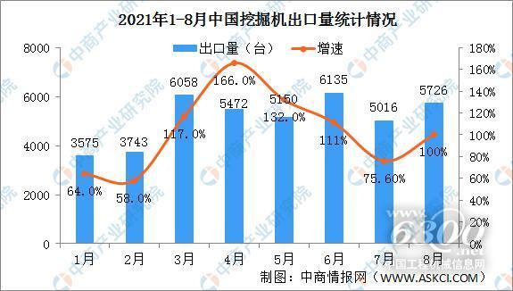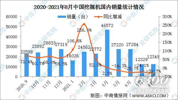 2021年8月中国挖掘机销量市场分析:国内销量同比下降31.7%