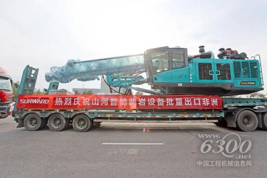 本次批量发货的一体化潜孔钻机,包括SWDE138A和SWDB200A两个机型,集岩石自适应控制、智能共底控制、山河祥云物联管理平台于一身,兼具智能、高效、可靠、环保、节能、安全等产品优势,是“5G+工业互联网”信息技术加持的典型应用。仪式现场,10辆满载凿岩设备整机及配件的运输车辆在山河工业城山河大道一字排开、列装待发,随着何清华一声“发车”令下,所有运输车辆依次驶出公司大门。这些凿岩装备即将远渡重洋,奔赴非洲市场,为 “一带一路”建设贡献山河力量。