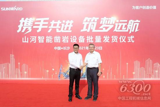 8月23日上午,山河智能凿岩装备批量发货仪式在山河工业城举行。中国能源建设集团客户代表高登山、山河智能董事长、首席专家何清华、总经理付向东、执行总经理夏志宏及公司高管领导朱建新、黄志雄、龙居才出席,凿岩设备事业部常务副总经理舒敏飞主持仪式。