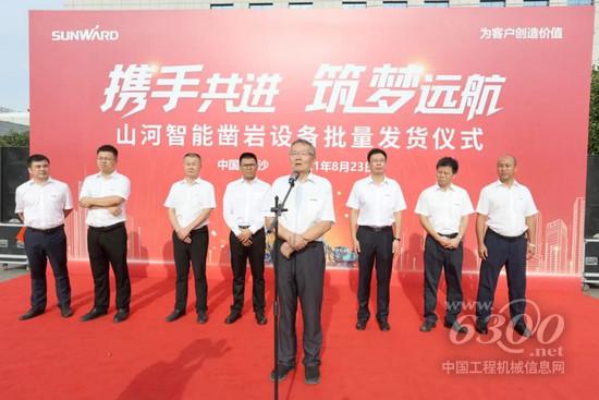 △山河智能董事长、首席专家何清华在发货仪式上讲话