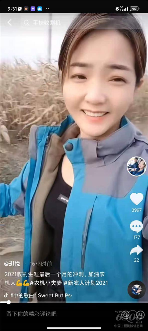 琪悦说:“以前我的抖音号主要记录和孩子在一起的生活片段,没多少阅读量,大约2020年5月我拍了一条我们收割小麦和在田间吃饭的短视频,没想到获得了一万多人点赞,还有许多网友转发、留言,留言中有问我们收割机质量怎么样的,也有让我们到他们那里收割的。我意识到这个抖音将会成为我们跨区道路上的‘好帮手’。从此,我开始有意识地在抖音上发布一些跨区收割情况,以及我们跨区机手的生活,慢慢地获得了许多人的关注,目前已有粉丝31万多,后来我又注册了快手号,拍摄的视频在快手上同步发布,目前粉丝已有20多万。