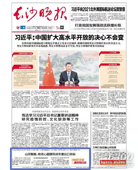 近日,《长沙晚报》对山河智能外贸出口情况给予关注,发布题为《山河智能:有信心超额完成年度出口目标》的报道。