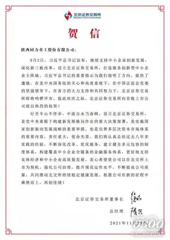 这是一个载入史册的重要日子,陕西同力重工股份有限公司(股票简称:同力股份,股票代码:834599)作为北交所首批上市公司于2021年11月15日正式开市交易。