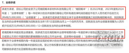 值得注意的是,本次股份转让协议特地对路畅科技全资子公司南阳畅丰新材料科技有限公司提出业绩要求——在2022年度、2023年度和2024年度,每一年经审计的合并报表归属母公司所有者的净利润总额应不低于2500万元。