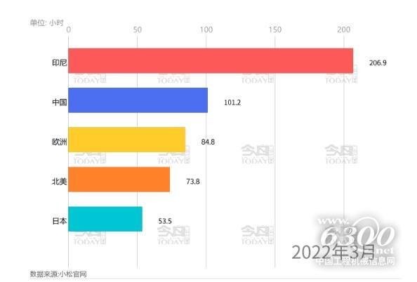今日,小松官网公布了2022年3月小松挖掘机开工小时数数据。数据显示,2022年3月,中国小松挖掘机开工小时数为101.2小时,同比下降16.9%。