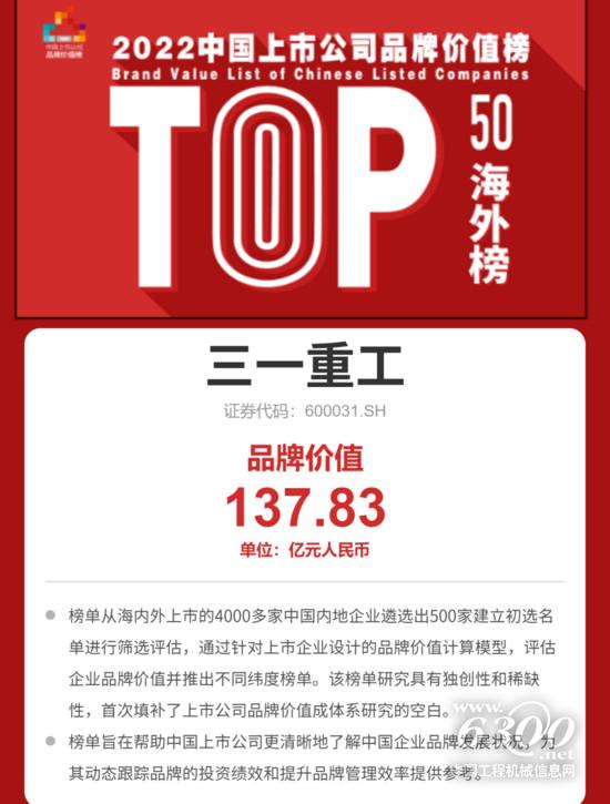 此外,作为2022中国上市公司品牌价值榜TOP100上榜企业,三一重工同步入选“每经品牌100指数”。