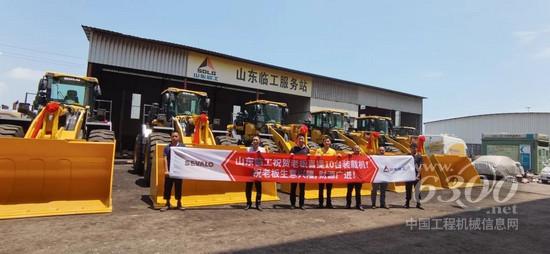 近日,10台临工装载机身披大红花批量交付北部湾某大客户。