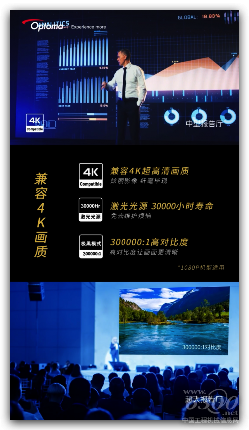 凭借强大的技术实力,奥图码将德州仪器(TI)DLP技术与自研DuraCore激光技术进行了融合,前者支持轻松投射像素无雪花、精确度高,灰度比例与彩色重现质量优秀的细腻画面,后者则能够对画面色彩和锐度进行进一步优化,使得实际画面以更加精准、真实和自然的姿态进行展现,