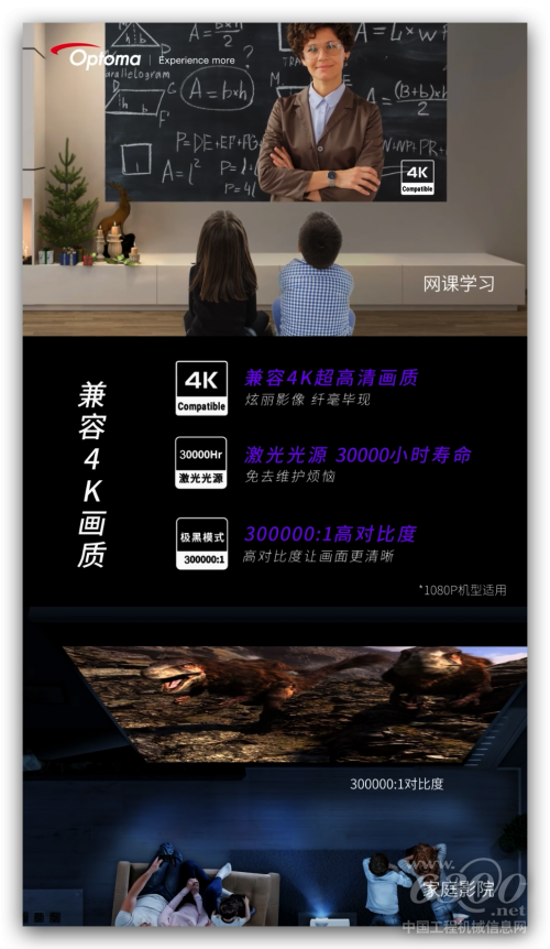 相比商用场景,家庭用户使用投影产品会更关注实际观影体验。为此奥图码做好了充足准备,寰宇系列「金星」全能激光投影机支持4K超高清信号,并能以1920x1080(1080P机型支持)真实分辨率为用户带来纤毫毕现的细腻画质,再加上10.7亿色全彩显示,无论是硝烟弥漫的战场、车流不息的都市、鸟兽群聚的森林,都能借助铺满眼帘的超大屏幕进行呈现,带来更加身临其境的体验。