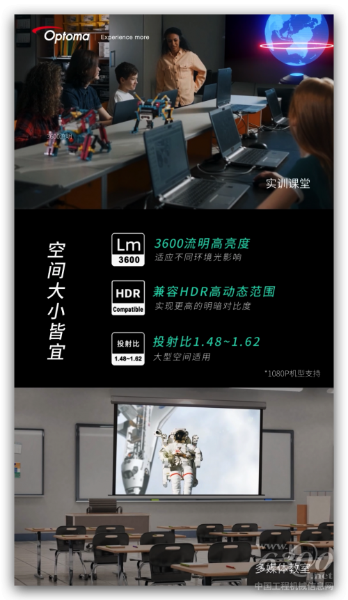 除此之外,奥图码寰宇系列「金星」全能激光投影机还能满足高教、普教、幼教等教育机构的显示需求。学生与进修人群每次学习都会花费大量时间观看屏幕,传统显示设备屏幕具备自发光特性,成像过程中不可避免会向外发散对人眼有影响的高能短波蓝光,奥图码寰宇系列「金星」全能激光投影机具备漫反射成像的先天优势,实际使用中进入人眼的高能短波蓝光会被大幅减少,从而带来更健康护眼的使用体验。