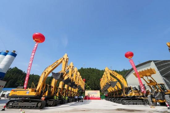 骄阳似火,流金铄石,施工现场热火朝天,争分夺秒。7月15日,江西某工地举办了盛大交机仪式,山东临工33台大中型挖掘机、装载机、压路机等设备分列两侧,如同出征的将士,即将奔赴遂大高速公路施工现场,助力国家重点工程建设,在新的战场展示山东临工“城市交通建设综合解决方案”的风采。中铁十一局、中铁十二局、中铁二十一局、山东临工、江西荣通路桥、江西临沃等公司相关领导共同出席见证。