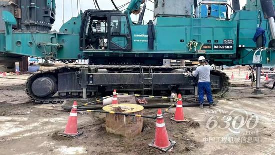 “该项目施工桩径为0.8-1m,孔深46-47m,主要以粘土、泥岩为主,对于这台‘全球最高桩架’来说可轻松拿下。”现场技术人员信心十足地谈到,它的施工优势主要在于立柱高度高,即使是搭载更长的钻具及更重的工作装置,也不会影响到桩架的稳定;在成孔深度需求较深及钻孔直径较大的工况下,可一次性成孔(不用接钻杆或采用伸缩钻杆),大幅提高施工效率。