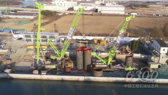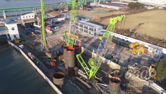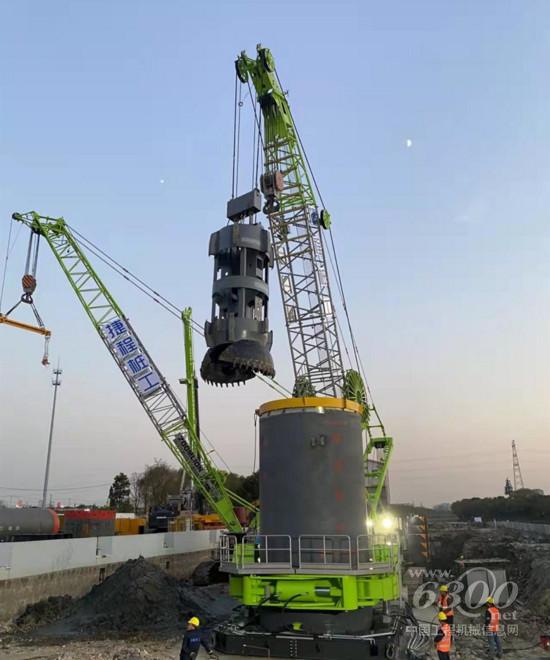 ▲中联重科全球最大直径全套管钻机及配套设备正在施工