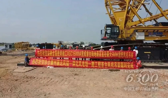近日,在湖北襄阳,襄北风储一体化风电场的首台大高度、大兆瓦混塔风电机组由安徽金服公司吊装完工,施工主力设备采用徐工千吨级履带起重机——XGC15000A。