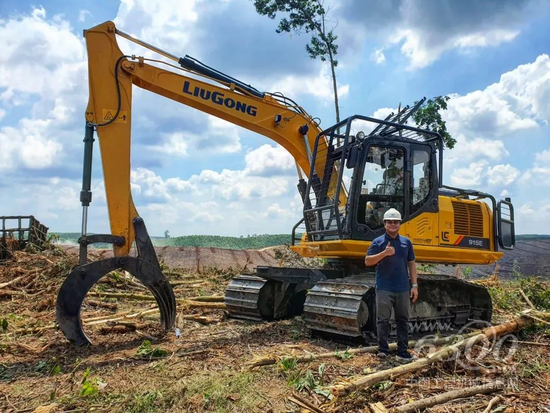 该客户为苏门答腊排名前五的林业承包商,目前工程机械设备保有量为400多台。去年7月份,客户首次购买了柳工908挖掘机用于甘蔗地作业。然而,第一批设备出现了“水土不服”的状况,柳工印尼公司随后立即派技术人员达到现场进行调研,并对设备进行了适应性改进。经过改良的设备完美在工况中表现出色,客户随即跟进购买了工推土机、挖掘机等设备用于棕榈等林业工况。目前该客户所拥有的柳工设备几乎覆盖全线,其中就包括了近20台专用于林区作业的915E FM挖掘机。