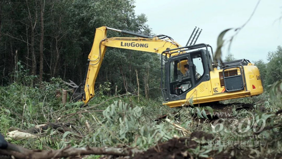 穿行30公里如亚马逊雨林般的水道之后,映入我们眼帘的是一片“与世隔绝”的林区,数台柳工915FM挖掘机正在繁忙地进行伐木作业,自今年6月份开始,这批挖掘机一直在繁茂的森林中进行“探险之旅”。