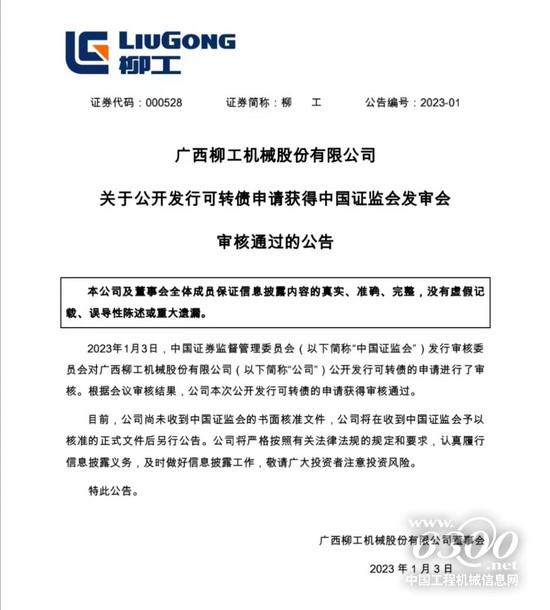 6.柳工公开发行可转债申请获证监会审核通过;
