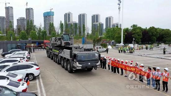 5月2日上午8时38分,十余辆大卡车同时装载中联重科全新一代ZAT24000H全地面起重机开进长沙国际会展中心广场,这是中联此次参展首个进场的超大型参展设备,也是本届CICEE最高、最大、最亮眼的参展设备之一。