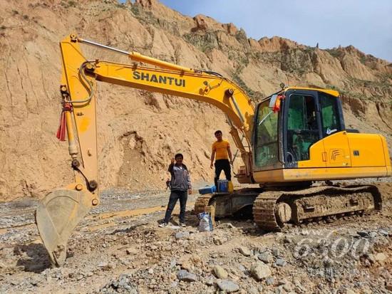 在烈日和高海拔下,瓦增仓踏上了艰难的旅程。他沿着河道前行,每一步都充满了决心和坚持,他心中只有一个目标:确保挖掘机能够及时投入施工,为客户提供高质量的服务。抵达挖机施工地点后,他迅速展开工作,快速定位并解决了挖掘机的故障。