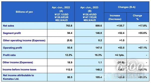05 小松:2023年4-6月净利润同比增长31%