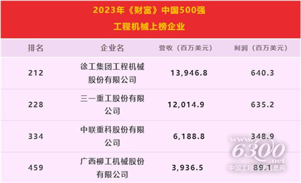 近日,财富Plus APP发布了2023年《财富》中国500强排行榜。工程机械行业仅有4家企业登榜。而且受行业周期下滑以及榜单开放等原因影响,4家工程机械企业在2023年《财富》中国500强排行榜上的名次整体下滑。在榜单中,整体上市后的徐工超越三一成为行业排名第一。